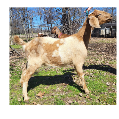 GG is still very young but has wonderful Nubian characteristics in her head structure and strong on her legs while standing and in motion.